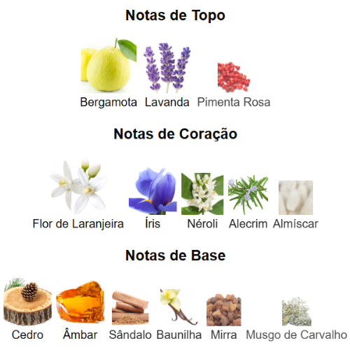 • 🍃 Musgo de Carvalho — Terroso, verde e elegante, fecha o perfume com um rastro clássico e sofisticado.