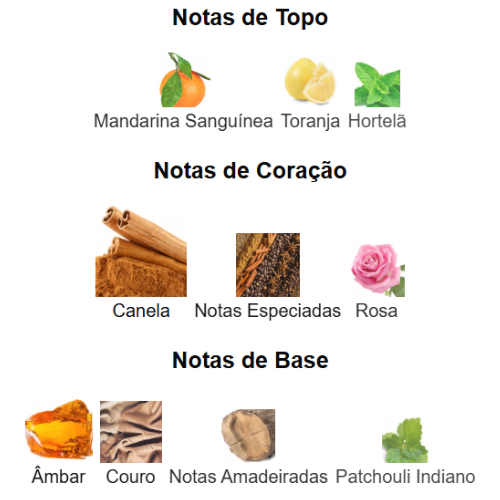 🧡 Âmbar | 🪵 Notas Amadeiradas | 👞 Couro | 🌿 Patchouli | 🧄 Notas Especiadas