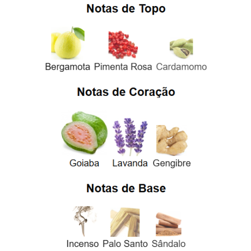 No coração, a doçura tropical da goiaba se mistura ao frescor da lavanda e ao calor do gengibre — uma combinação inesperada e irresistível.