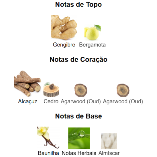 🌿 Notas de Coração – Alcaçuz, Cedro & Agarwood (Oud)