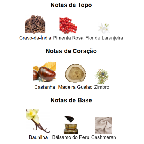 🌰 Castanha: traz um acorde gourmand seco, quente e envolvente.