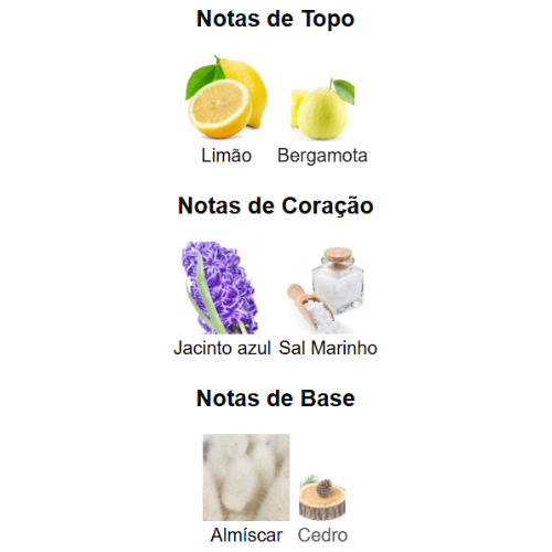 🌊 Sal Marinho – Puro ar oceânico! Nota mineral, limpa e revigorante que dá ao perfume seu DNA marítimo e irresistivelmente refrescante.