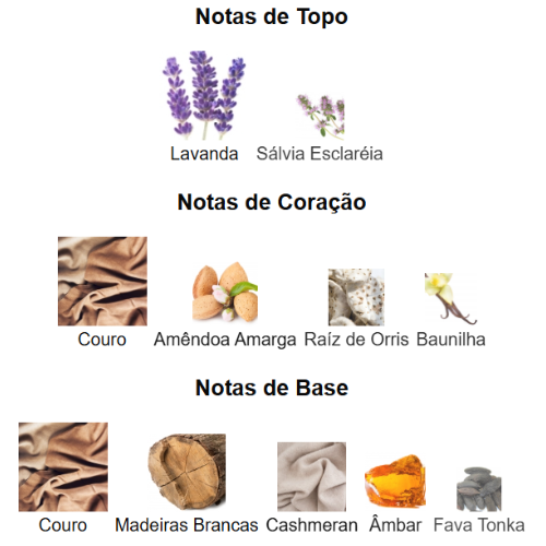 🌸 Raiz de Orris – floral e atalcada, eleva a composição com um toque luxuoso e nobre.