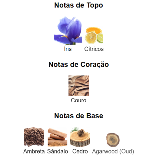 🧥 Couro confere caráter, poder e sensualidade, sendo a alma forte e marcante da fragrância.