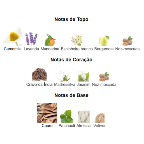 🍊 Notas de Topo – Camomila, Lavanda, Mandarina, Espinheiro Branco, Bergamota & Noz-moscada
