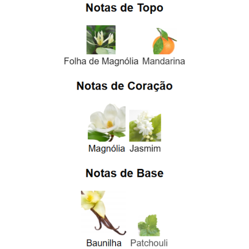 Um buquê floral sofisticado e envolvente, revelando a doçura romântica da magnólia e a intensidade sedutora do jasmim.