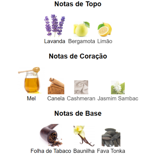 🍃 Folha de Tabaco – Profunda e viril, empresta elegância e caráter ao perfume.